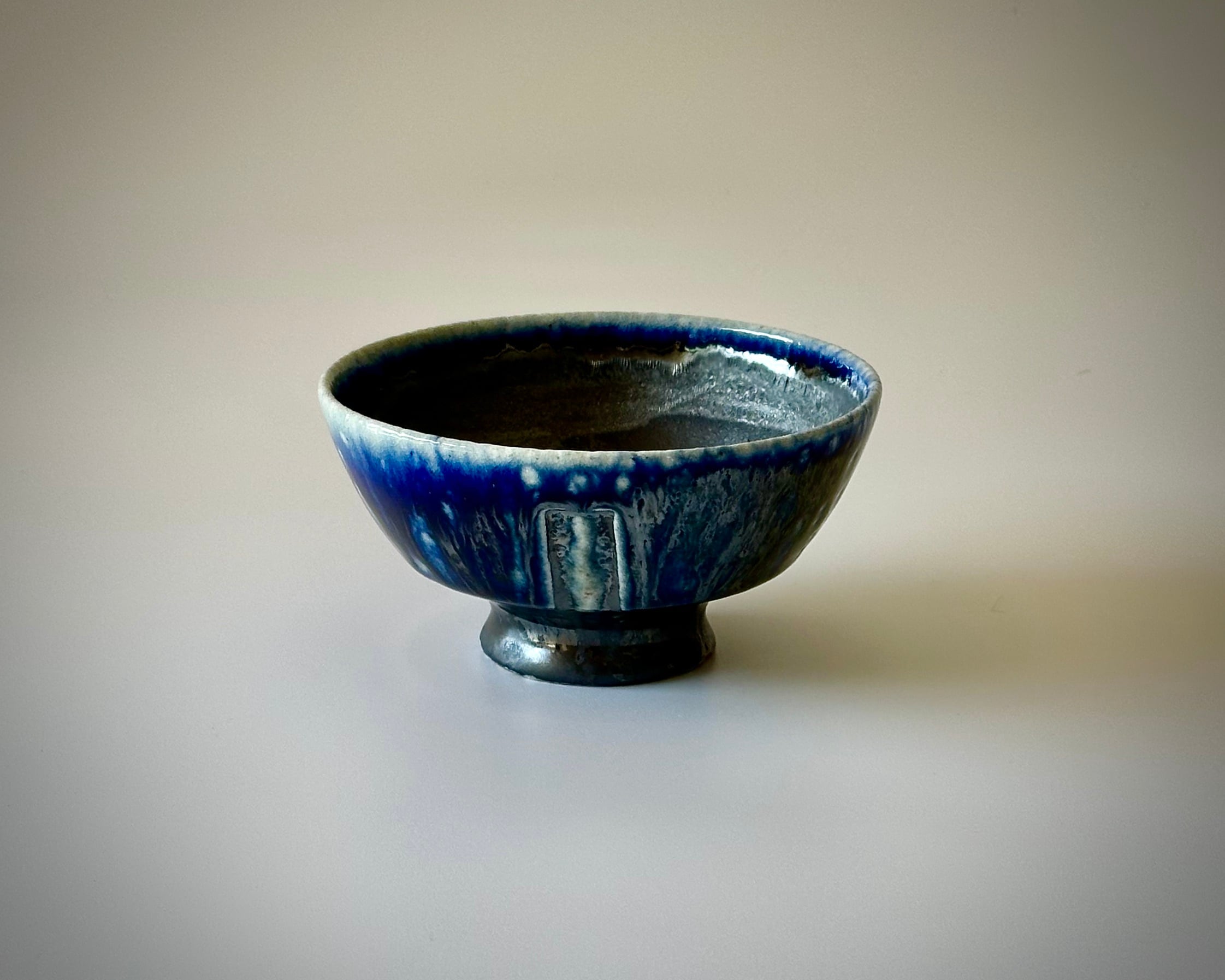 重曹を窯に直接投入して器面にソーダガラスを形成させるソーダ焼成。外側はソーダがよく乗り艶やかさが現れていますが、炎が通らなかったことで内側はドライでマットな雰囲気になっています。内外の対比が楽しめると思います。