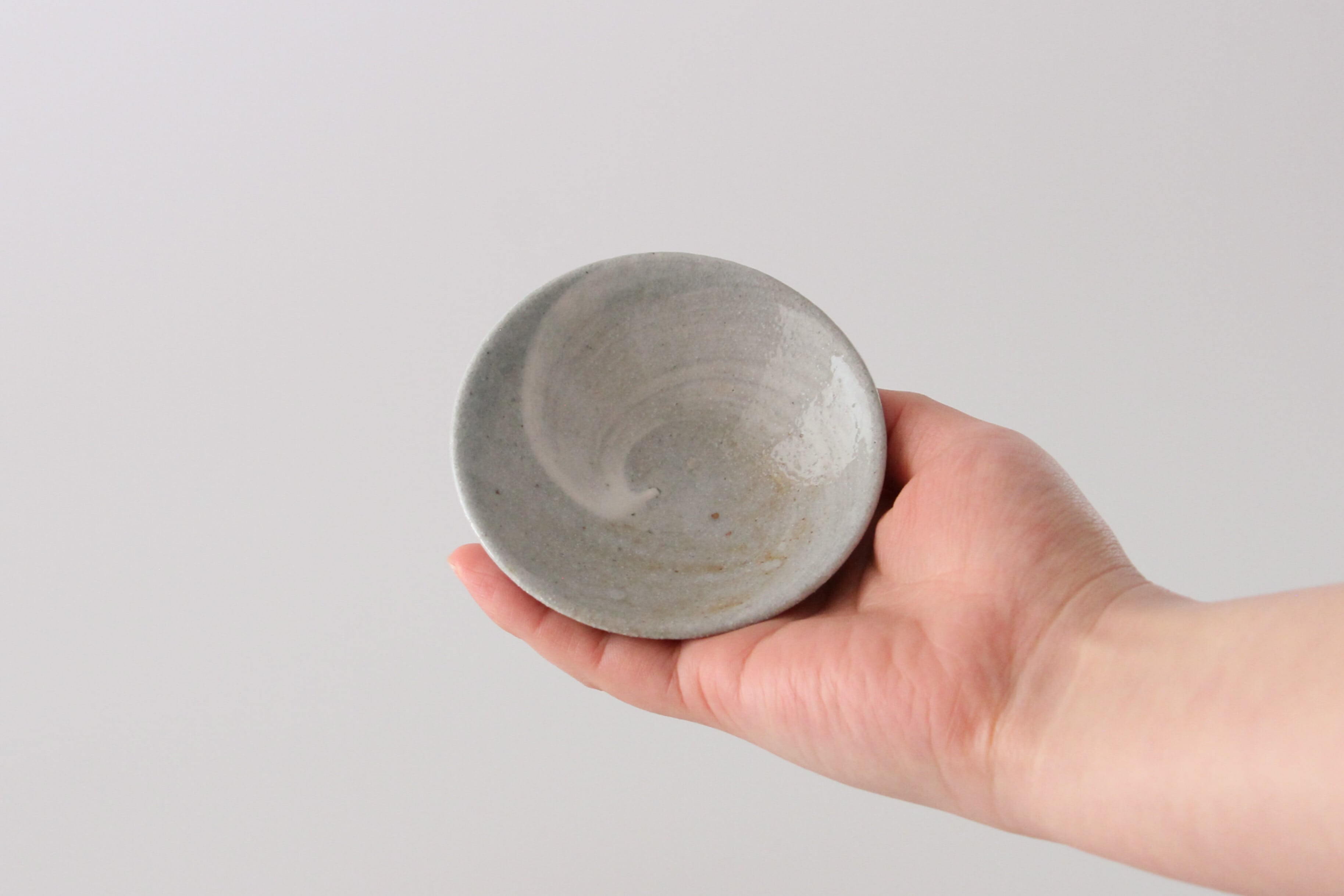 重曹を窯に直接投げ入れて器面にソーダガラスを形成させるソーダ焼成。白ソーダは長石釉の上にソーダガラスの層を形成しています。窯の場所によって青白くなるものもあれば薄いピンク色を呈色することもあります。